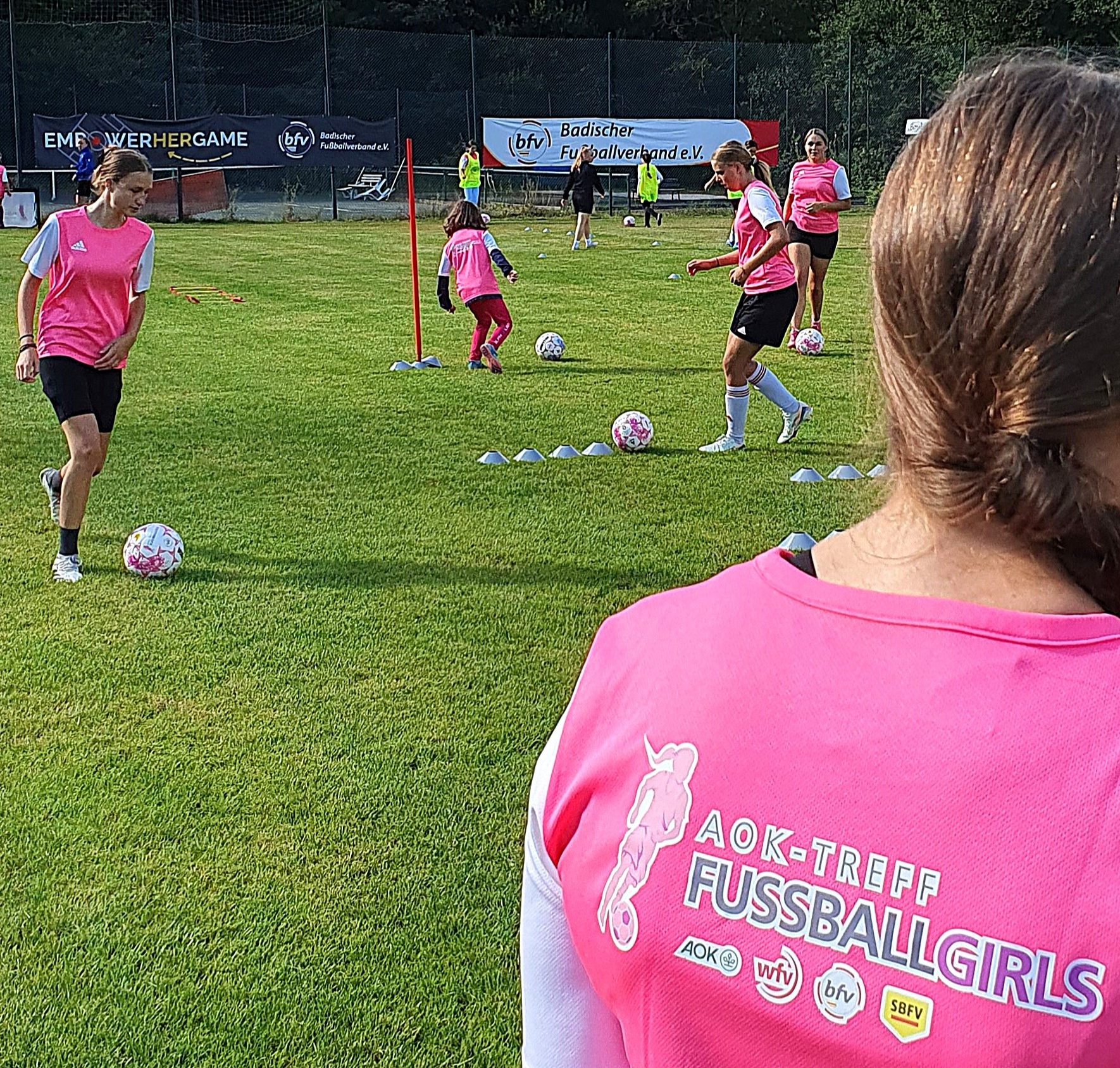 Die drei Fußballverbände in Baden Württemberg (Baden, Südbaden, Württemberg) fördern zusammen mit der AOK den Mädchenfußball. Hierfür wurde der „AOK-Treff Fußballgirls“ ins Leben gerufen, worüber die Vereine eine Starthilfe für ihr Engagement im Juniorinnen-Fußball bekommen. Neben der Leitung von vier Trainingseinheiten durch eine Trainerin des Verbands, stellt die AOK hier auch Trainingsmaterialien (Minitore, Leibchen, Hütchen, Stangen, Bälle) und Trainingsshirts für die Teilnehmerinnen zur Verfügung. Beim badischen Fußballverband fand seit Corona kein solcher Treff mehr statt. Umso stolzer sind wir als JSG, mit dem SC Schielberg als Ausrichter und Gastgeber, hier als erstes wieder Kooperationspartner sein zu dürfen.