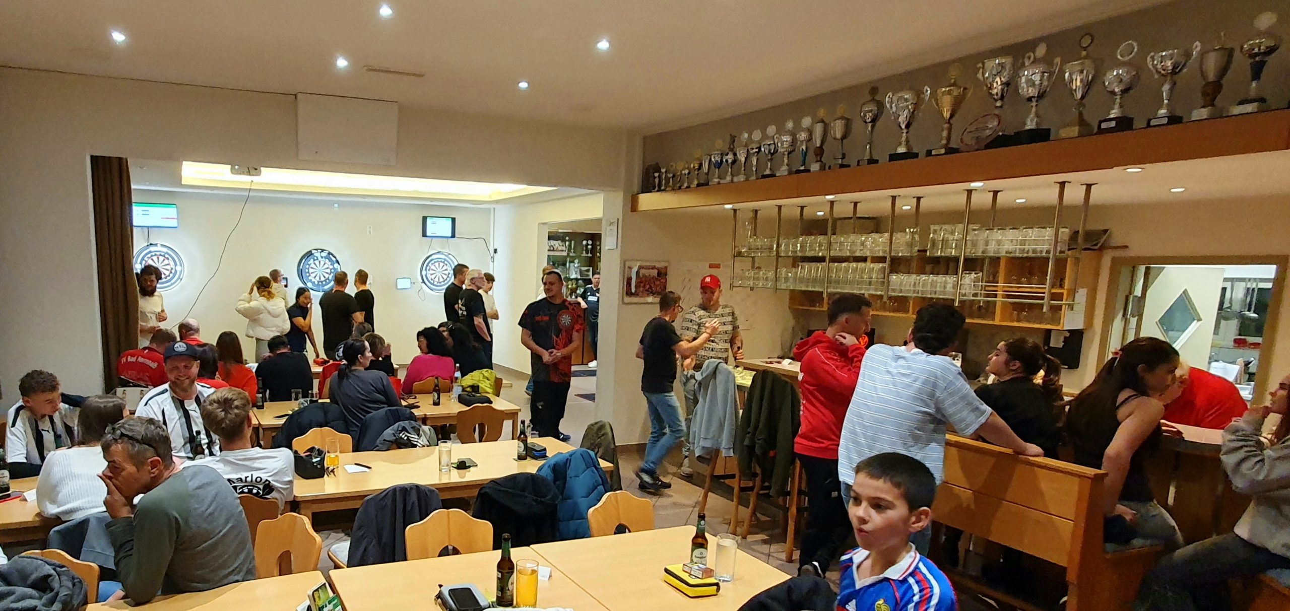 Am Samstag luden unsere Darter jedermann zum Dart-Turnier ins Sportheim ein. Mit 42 Startern war der Zulauf groß und auch einige interessierte Zuschauer und Unterstützer fanden den Weg ins Sportheim. Auf sieben Scheiben wurde im „501 Double out“ gespielt, bei dem man durch erworfene Punkte von 501 auf 0 Punkte kommen muss. Am Ende muss die „0“ mit einem Doppel-Feld erreicht werden, was gerade für die vielen Hobbydarter heute die größte Herausforderung darstellte, weil eben genau dieses eine Feld getroffen werden muss. Entschieden wurden die Duelle des Turnierbaums im „Best of 3“, also wer zuerst 2 Spiele gewonnen hat. Wer in einem Duell unterlag, war nicht gleich ausgeschieden, sondern spielte im „Lucky-Looser“ Baum um Platz 3. Nach fünfeinhalb Stunden standen am Ende die Sieger fest, die sich über Gutscheine unserer freundlichen Unterstützer freuen konnten. Leider musste der ungeschlagene Sieger wegen fortgeschrittener Stunde verzichten, was zu früher Morgenstunde zum Duell des „Lucky-Loser“ Tristan und der Finalunterlegenen Vivian führte. Schade, weil die Ehre dem Ungeschlagenen gebühren sollte, dem wir an dieser Stelle nochmals herzlich gratulieren.