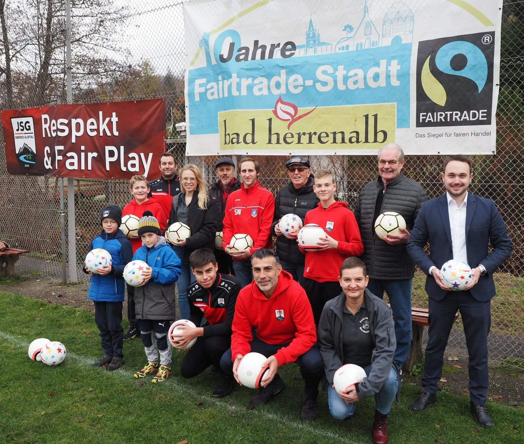 Die 39 fair hergestellten Fußbälle in drei Größen (Bambini, D-Jugend und A- bis C-Jugend) konnten mit einer 600-Euro-Spende der Sparkasse Bad Herrenalb gekauft werden. Am vergangenen Samstag wurden sie an den Sportverein Bad Herrenalb, die Freizeitkicker Bernbach und die Sportgemeinschaft Neusatz/Rotensol übergeben. Reiner Merkle, Sprecher der Bad Herrenalber Fairtrade-Gruppe, gab den Anstoß zur Beschaffung der Bälle. Die Gruppe bemüht sich seit genau zehn Jahren darum, Fairtrade [dt.: gerechter Welthandel] in Bad Herrenalb zu fördern.