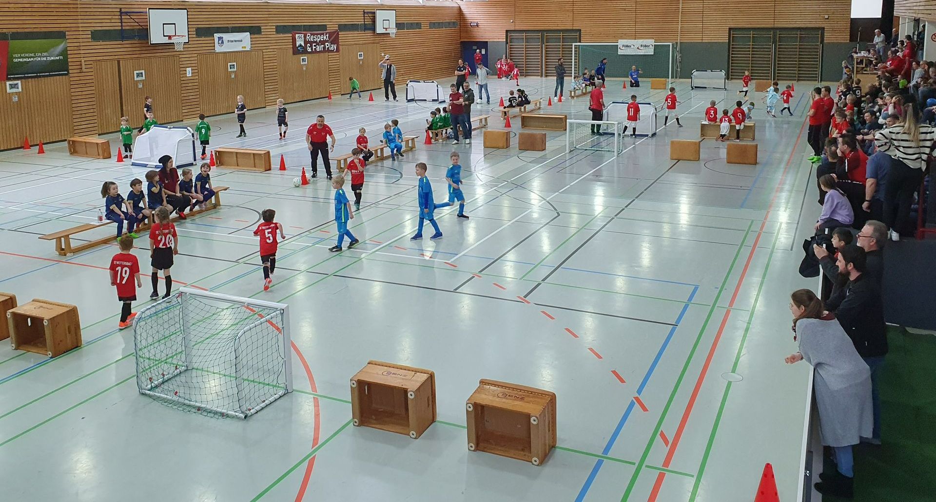 Am Sonntag spielten unsere 10 F-Juniorinnen von Amina und Claudia in einem F2-Turnier gegen gleichaltrige Jungs und zeigte sich als starke und geschlossene Mannschaft. Nach einem verdienten Sieg und einem sehr unglücklichen 1:2 zeigten sie insbesondere beim 0:3 im letzten Spiel gegen die Jungs der SpVgg Durlach-Aue, was sie drauf haben. Mit 15:0 Toren aus zwei Spielen kam Durlach-Aue zwar gut ins Spiel, aber unsere Mädchen zeigten ihren Kampfgeist und verteidigten schon ab der Mittellinie mit vollem Einsatz. So stand es nach 6 Minuten noch 0:0 und wir hätten sogar in Führung gehen können. Am Ende mussten die Mädels bei schwindender Kraft wegen des Dauersturmlaufs der Gegner drei „Murmeltoren“ hinnehmen, bekamen aber von der ganzen Halle Applaus bei jeder Aktion.