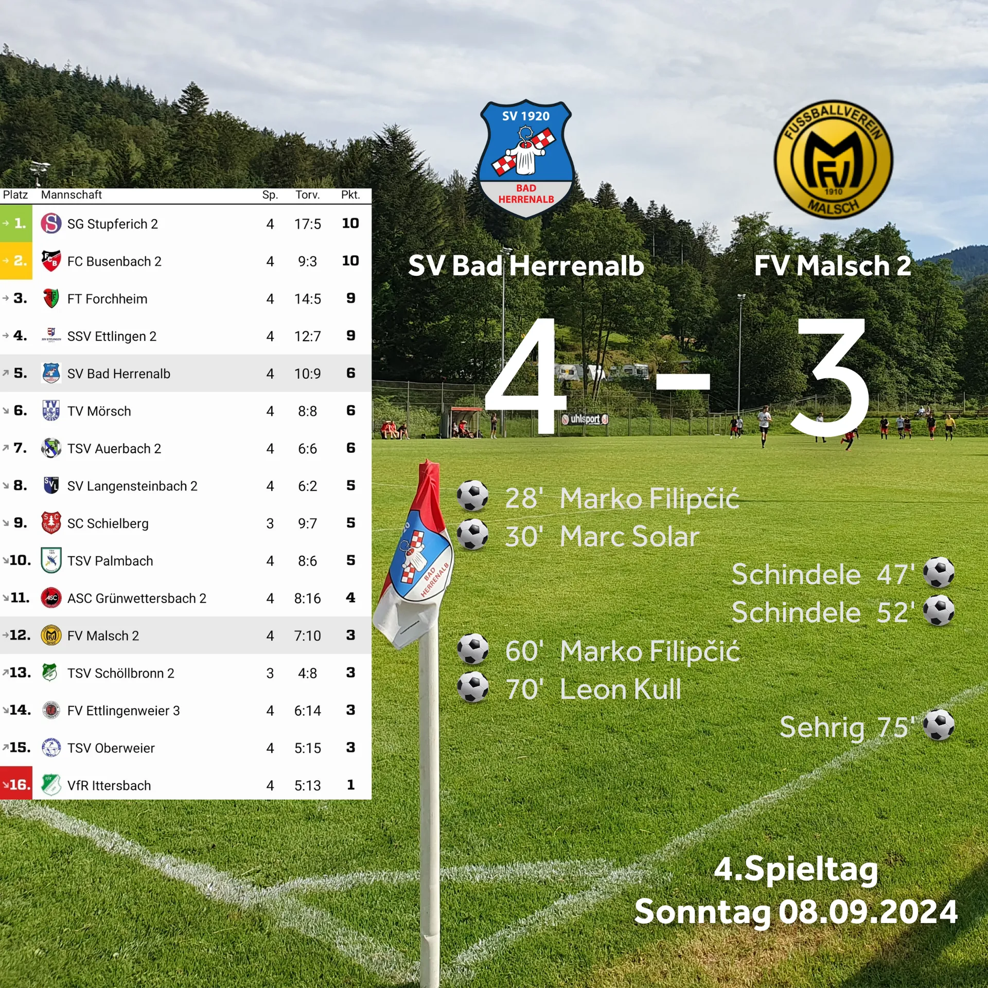 SV Bad Herrenalb – FV Malsch II 4:3 (2:0)