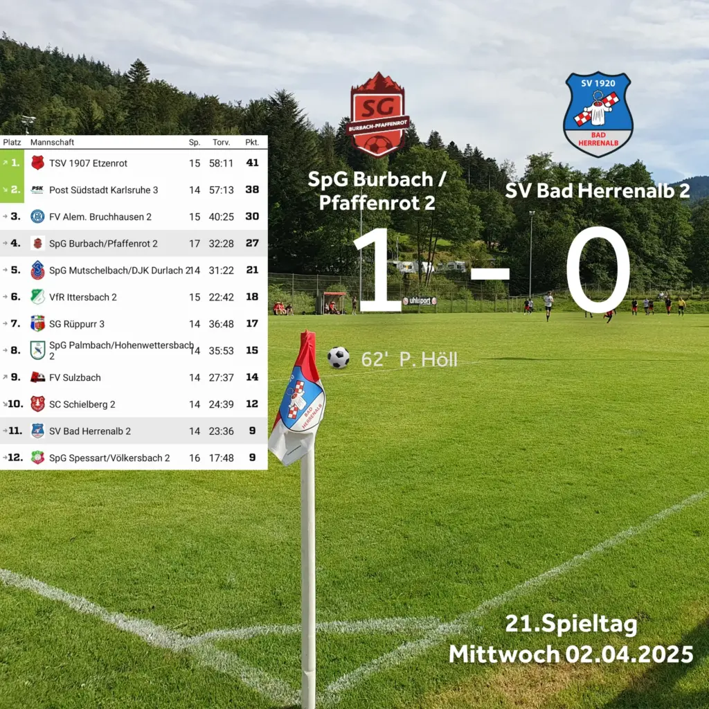 In Hälfte Zwei hatten wir einen Freistoß, der knapp über das Tor flog. Bei einem Befreiungsschlag der Gastgeber ging unser Verteidiger etwas überhastet in den Zweikampf, was der Langensteinbacher dankend annahm, geschickt einfädelte und dafür den Elfmeterpfiff bekam. Diesen verwandelte der Schütze in Minute 53 zum 1:0. In der Folge blieben klare Torchancen auf beiden Seiten aus, sodass der Elfmeter am Ende das Spiel zu Gunsten der Langensteinbacher entschied, die heute jedoch nicht unbedingt das bessere Team waren in höhepunktarmen Spiel, welches mit 0:0 einen leistungsgerechten Ausgang verdient hätte.