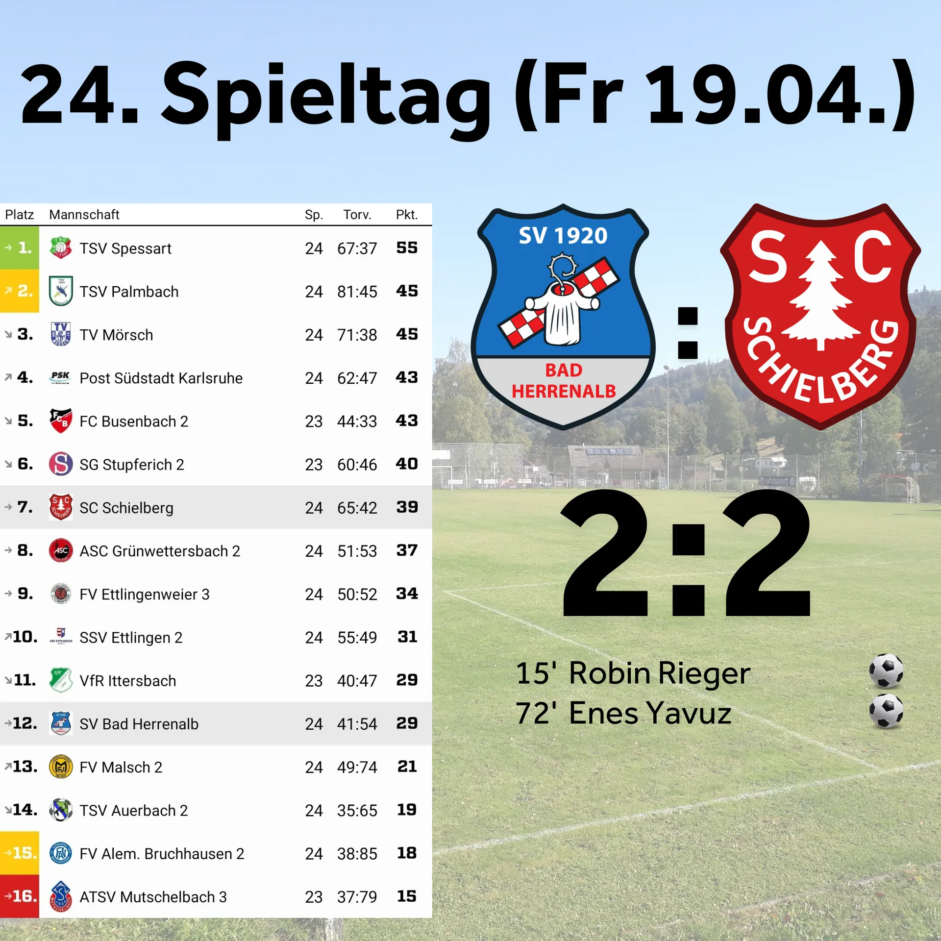 Aus der Kabine kamen die Gäste stärker, während wir den Wiederanpfiff verschliefen. So gab es zunächst 3 gute Chancen für Schielberg, die jedoch ungenau abgeschlossen oder mit starkem letztem Einsatz von uns geklärt wurden. Auch wir hatten in der Folge zwei Chancen, die jedoch unsauber zu Ende gespielt wurden. Das Spiel wurde nun intensiver und es gab viele Zweikämpfe im Mittelfeld, die von Rollert unterbrochen werden mussten. So wurden zwischen 65. Und 83. Minute 5 gelbe Karten gezeigt, von denen wir 4 sahen und manch Schielberger froh sein konnte, dass der SSC nicht mit uns gleich zog in dieser Statistik. Ohne Gegnereinwirkung verletzte sich in dieser Phase Rieger und musste unter Applaus vom Platz gestützt werden. An dieser Stelle gute und schnelle Genesung! Einen langen Ball in die Spitze, legte der für Riegereingewechselten Bohluneigennützig auf Yavuz quer. Dieser legte ihn am Verteidiger vorbei auf seinen starken Fuß, um den Ball aus 20 Metern ins lange Eck zu schlenzen. Der Torhüter streckte sich vergeblich, sodass wir mit 2:1 erneute in Führung gingen (72`). In der Folge führte ein unnötiges Foul zum Freistoß für Schielberg vom rechten Halbfeld. Diesen brachte der agile Kunz scharf vors Tor. Halilaj wehrte den per Kopf verlängerten Ball ab, konnte ihn aber nur nach vorne abklatschen lassen. Leider spekulierte erneut nur Veltre auf den Abpraller. Halilaj lag noch am Boden und Veltre schob ungestört zum 2:2 ein (79`). Dies blieb auch das Endergebnis.