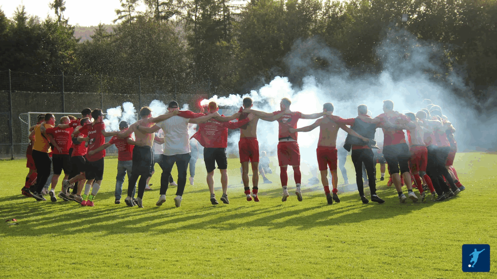 Beim Albtal-Gipfel war unsere Elf vor gewohnt großer Zuschauerkulisse von Anfang an richtig gut im Spiel und zeigte, dass sie das Derby unbedingt gewinnen wollte. Wir liesen Ball und Gegner gut laufen, wobei Schielberg dennoch die erste Torchance hatte. In der 11. Minute behauptete Mayasilci sich mit dem Rücken zum Tor sehr gut gegen die Verteidiger, spielte dann einen Ball aus der Drehung über eben diese hinweg auf den durchgestarteten Hartmann, der den Ball kurz vor dem herausgeeilten Torhüter erreichte und zum 1:0 vorbeispitzelte. Danach entwickelte sich ein offener Schlagabtausch mit mehreren Alu-Treffern auf beiden Seiten. Was auch von den Zuschauern mit viel Applaus gefeiert wurde. In der 40.Minute zeigte der Unparteiische gelb/rot gegen Hoppe, sodass es mit 0:1 bei noch 11 gegen 10 in die Pause ging.Nach der Halbzeit nutzten die Schielberger die Unterzahl und liefen dauerhaft an. Allerdings war unsere Defensive heute überragende aufgelegt und verteidigte alles konsequent weg. Eine Unachtsamkeit bei einer schönen Kombination durchs Mittelfeld brachte den Ausgleich für die Schielberger. Wir fingen uns jedoch schnell und setzten immer wieder Nadelstiche nach vorne. Kurz vor Schluss (87`) wurde der kurz zuvor eingewechselte Berisha von Amjoune auf der Außenbahn geschickt und konnte mit einem Schuss aus 20 m halblinker Position den Ball über den Torwart ins rechte obere Eck zimmern. Schielberg warf bis zum Abpfiff alles nach vorne, was wir aber mit einer geschlossenen Mannschaftsleistung wegverteidigen konnten. So blieb es bis zum Abpfiff bei einem starken Auftritt unserer Jungs und dem 1:2 Derbysieg trotz 50 min Unterzahl. Erneut konnten wir unseren Jubelkreis in der Seitz-Arena bilden und den „Derbysieger“ Gesang anstimmen. Anschließend saßen Mitspieler und Gegner noch gesellig bei kühlem Gerstensaft zusammen und analysierten das vergangene Spiel und den holprigen Saisonauftakt beider Teams sachlich, nüchtern und präzise, ehe es für unsere Derbyhelden und die lautstark von Außen unterstützende Zwodd zur Siegesfeier zu Abbas ging.