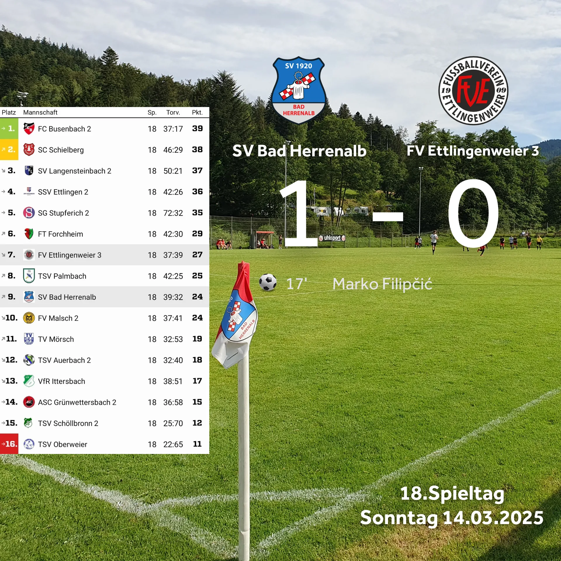 Nach dem schwachen Rückrundenauftakt galt es Wiedergutmachung zu betreiben gegen die 6 Punkte besser platzierten Gäste. Das merkte man dem Team vom Anpfiff weg an und so entwickelte sich ein Spiel auf ein Tor. In Minute 17 traf Filipcic zum verdienten 1:0. Auch in der Folge hatten wir mehrere gute Chancen und hätten bis zur Pause mehrfach erhöhen müssen. Leider fehlte hier das Abschlussglück.
