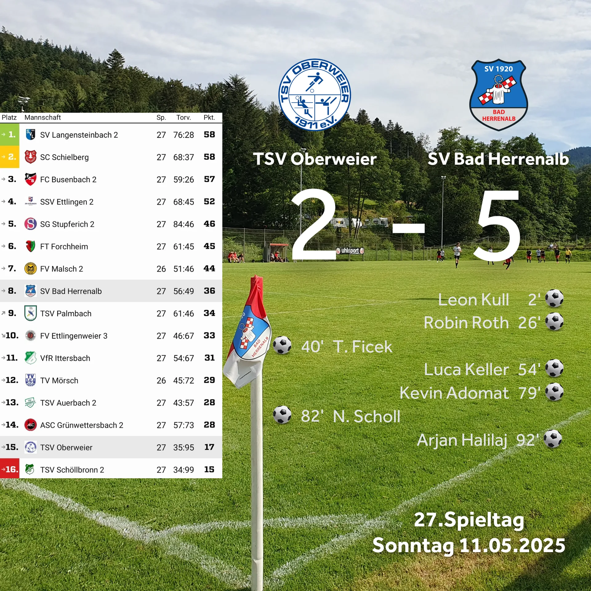 Mit ebenfalls dünnem Kader (eine Wechseloption) fuhr die Erste zum Schlusslicht nach Oberweier. Bereits nach zwei Minuten setzte Streeb zentral L.Kull in Szene, der den Ball am Torhüter vorbei zum 0:1 einschob. Wir blieben am Drücker, es dauerte jedoch bis Minute 26, bis wir unsere Chancen nutzen konnten. Auf Vorlage von Cisse schob Roth den Ball zum 0:2 ein. Ein hoher Ball von Oberweier in Minute 40 rutschte durch und der Stürmer verkürzte zum 1:2 Pausenstand.