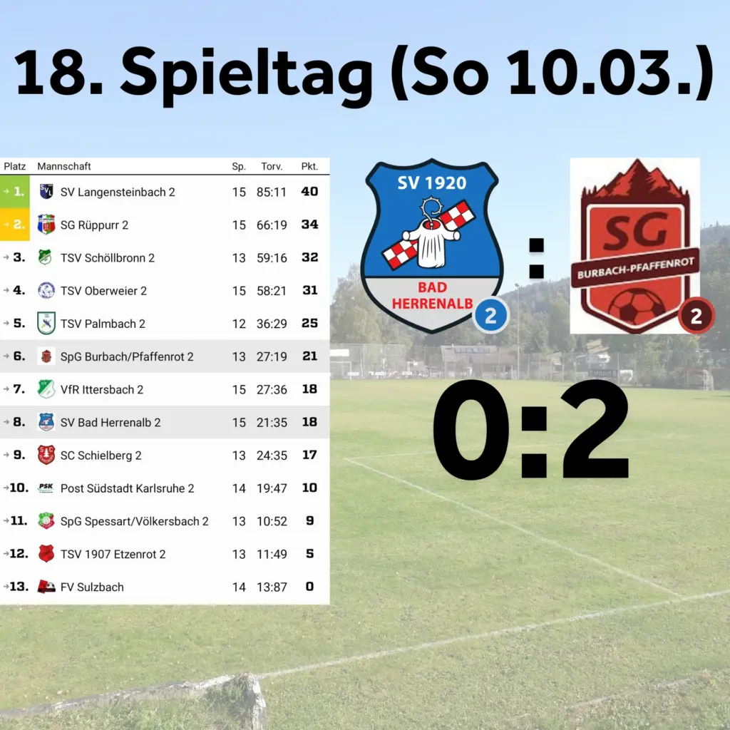 Wegen der Abschlussfahrt der Bernbacher Dorfhexen war unsere Zweite zusätzlich zu den Verletzten und Erkrankten personell geschwächt. Dennoch wollte man gegen den Lokalrivalen aus Burbach/Pfaffenrot an die guten Spiele der Rückrunde anknüpfen. Leider war davon mit dem Anpfiff nur wenig zu sehen und wir waren über die gesamte Spieldauer nicht richtig im Spiel. mutlos und teilweise auch lethargisch lies man die Gäste frei gewähren, was diese auch bis zur Pause mit zwei verdienten und schön herausgespielten Treffern nutzten.