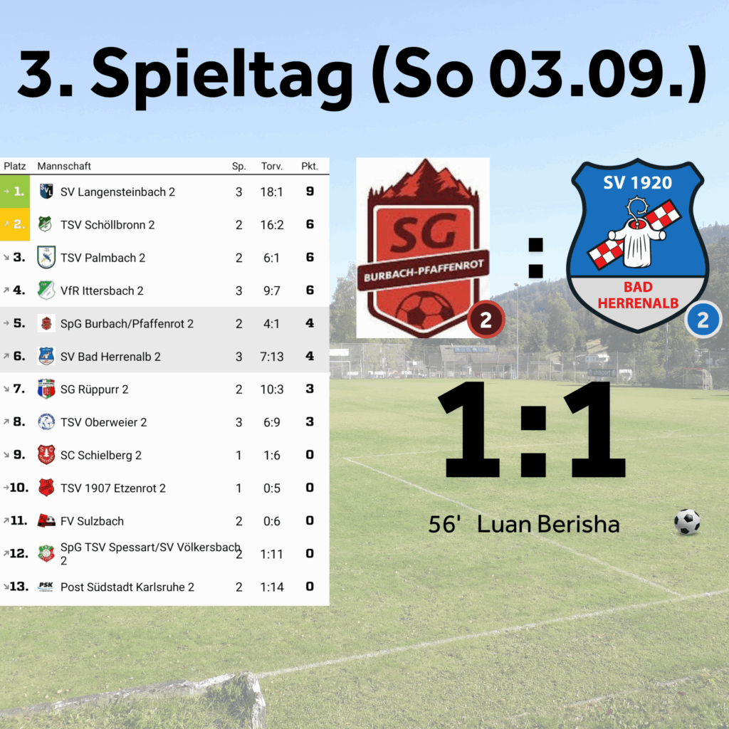 In der zweiten Hälfte versuchten es die Hausherren mit vielen langen Bällen, von denen einer durchkam und wir weder die Flanke, noch den anschließenden Kopfball verhindern konnten. Mit dem unbedingten Willen, hier nicht verlieren zu wollen, liefen wir die Gastgeber früh und druckvoll an und durch ein sehr anschauliches Tor von Berisha konnten wir verdient ausgleichen. Bis zum Ende gelang keinem Team der Lucky-Punch, sodass es beim 1:1 blieb.