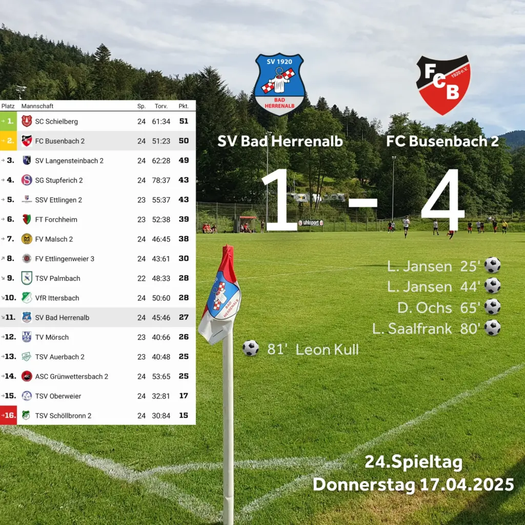 Erste verliert gegen Busenbach 2, die Zweite unterliegt Etzenrot trotz Comeback