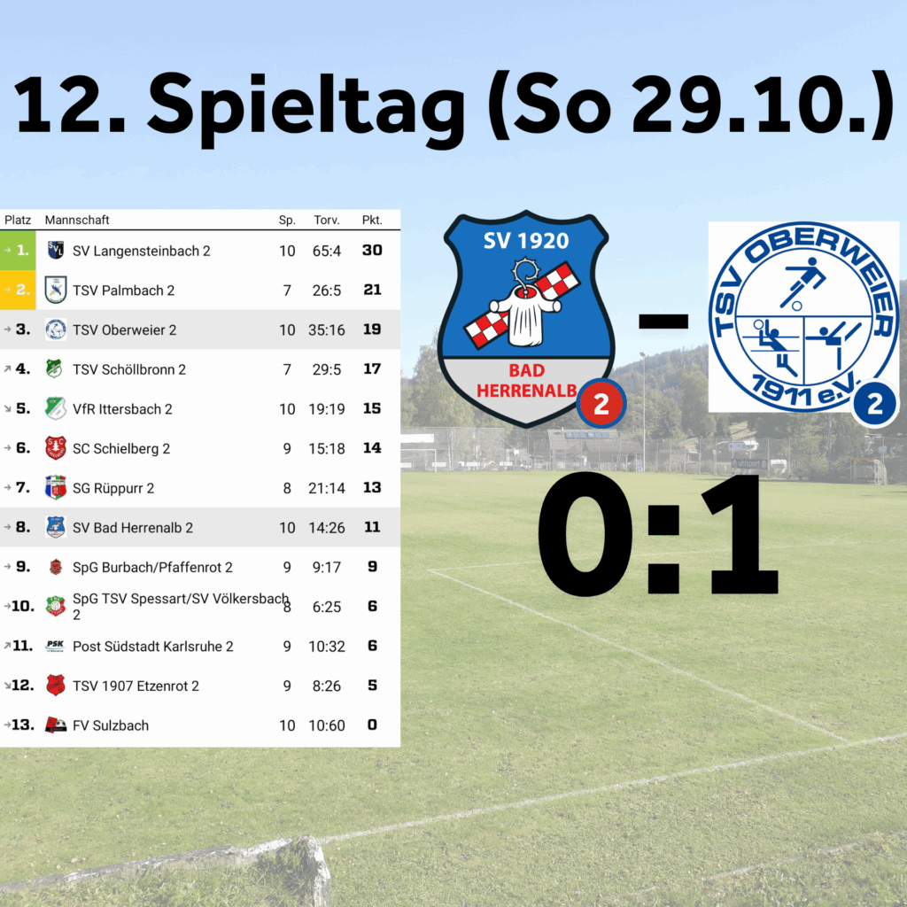 Zuletzt zweimal spielfrei war unsere Zweite heiß auf das Spiel gegen die formstarken Oberweierer. Leider fand man jedoch zu Beginn keinen Zugriff, was die Gäste mit dem 0:1 (24`) nach einer Ecke bestraften. Wir bekamen den Ball nicht geklärt und nach einem „Gestocher“ im Sechzehner landete der Ball irgendwann in unserem Kasten. In der Folge bestimmten wir die restlichen 60 Minuten das Spiel, erspielten uns viele Chancen, die wir jedoch nicht nutzen konnten. Damit knüpfte die Mannschaft an die bisherigen Spiele an, als sie ebenfalls von Spieler 1 bis 16 starke Leistungen zeigte, es jedoch oftmals mangels Torerfolgen nicht schaffte, sich zu belohnen. So blieb uns auch heute wieder nur das Lob und die Anerkennung, sowohl von den gegnerischen Spielern, als auch vom Schiedsrichter für ein tolles Spiel, während Oberweier die Punkte aus unserem Käfig entführte. Schade Jungs, aber irgendwann platzt der Knoten und wir belohnen uns für die starken Leistungen mit Punkten.