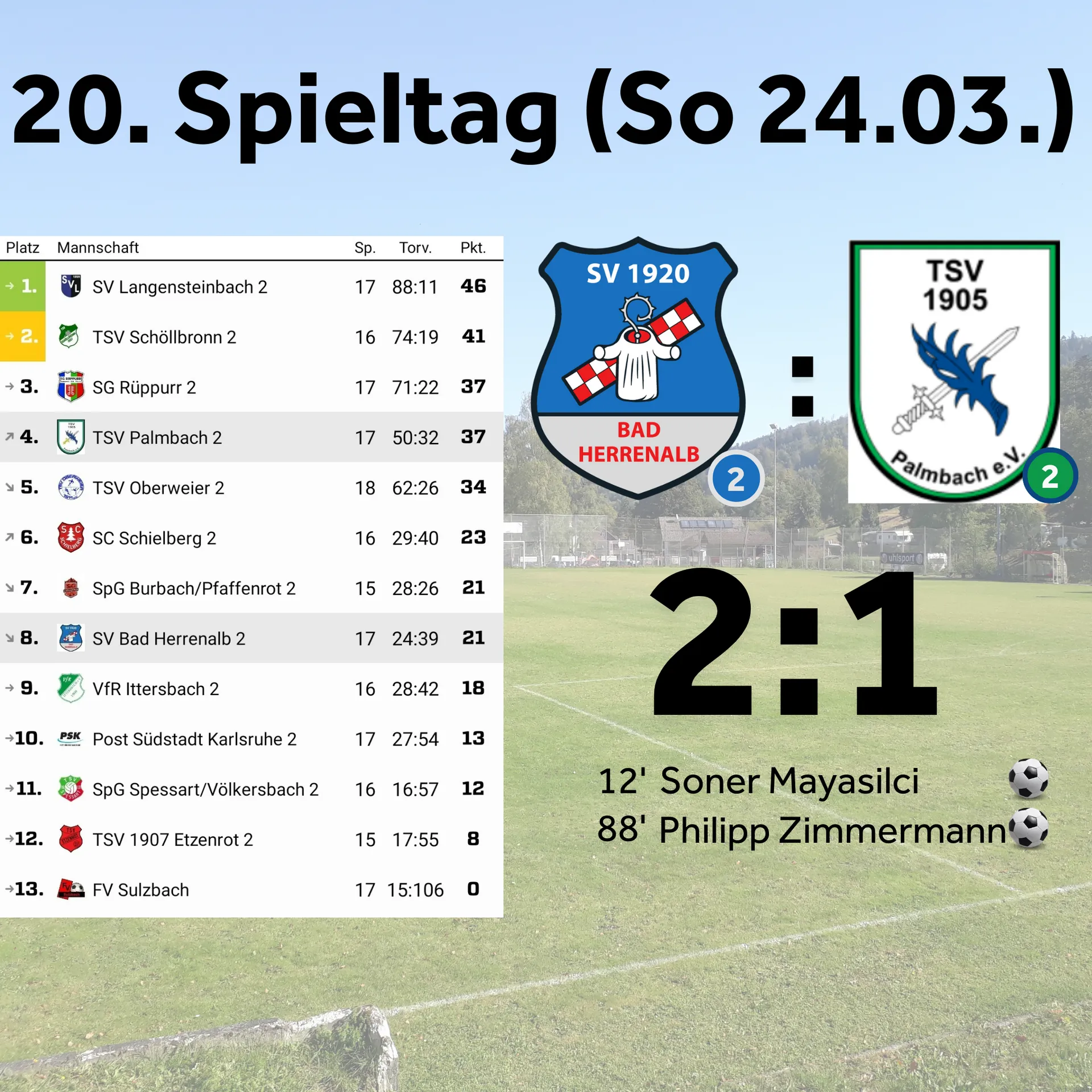 Die zweite Hälfte lief noch nicht lange, da musste das Spiel unterbrochen werden. Der Dauerregen wurde zu einem heftigen Schauer mit Blitz und Donner, weshalb die Teams zunächst in die Kabinen zurück mussten. Als das Gewitter wieder in Regen überging, bat der Schiedsrichter die Teams zurück auf den Rasen. Den Wiederbeginn setzte Palmbach besser um und kam zum 1:1 Ausgleich (65`). Doch unser Team steckte nicht auf und kam kurz vor Schluss per Traumtor zum verdienten 2:1. Nach einer Ecke wurde der Ball zur Sechzehner-Kante geklärt, wo Außenverteidiger P.Zimmermann stand. Mitspieler und Gäste staunten nicht schlecht, als er hoch stieg und den Ball per Seitfallzieher aufs Tor schoss. Leicht abgefälscht flog der Ball über den Torhüter hinweg zum Heimsieg in die Maschen. Eine Jubeltraube lies Zimmermann daraufhin hoch leben und man brachte das Spiel konzentriert zu Ende.