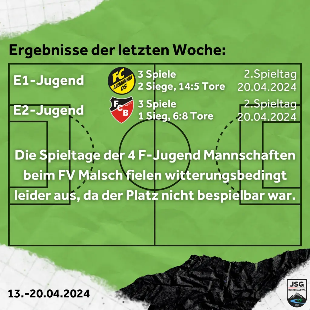 Die E2 hatte nach der Absage von Eggenstein nur zwei Spiele. Im ersten wurden sie von Ettlingenweier früh kalt geduscht mit dem 0:1 und 0:2. In der Folge entwickelte sich ein ausgeglichenes Spiel, bei dem es zum Ende 2:4 stand. Im zweiten Spiel gegen den ASC Grünwettersbach stand es lange 0:0 mit Chancen auf beiden Seiten, eher sogar den größeren für uns. Nach dem ersten Gegentreffer drückten und die Gäste jedoch hinten rein und so stand am Ende ein unglückliches und im Ergebnis zu hohes 2:6.