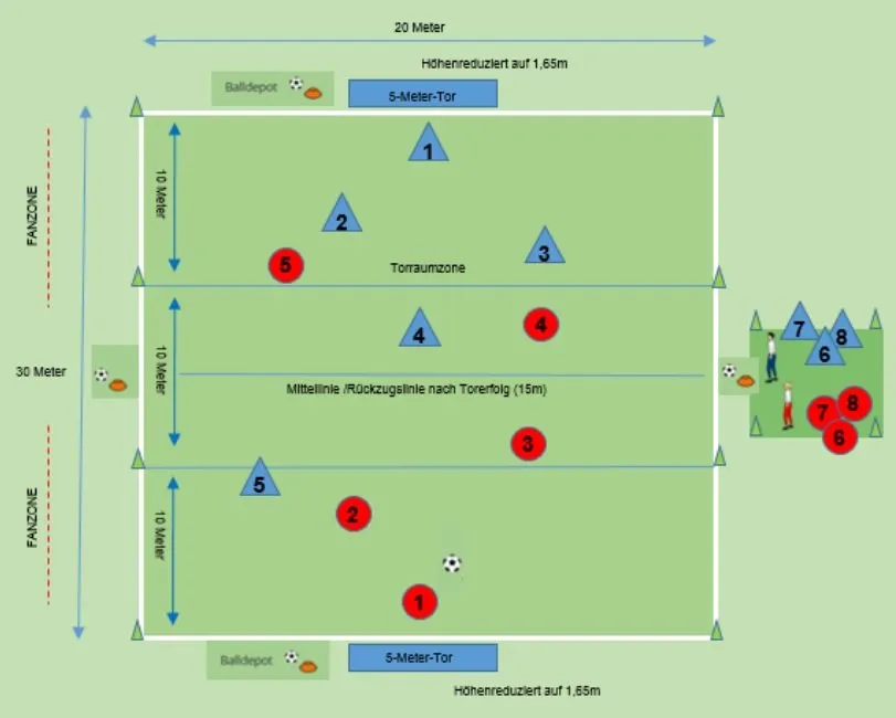 – Spielfeldbreite: Reduzierung von 25 auf 20 Meter