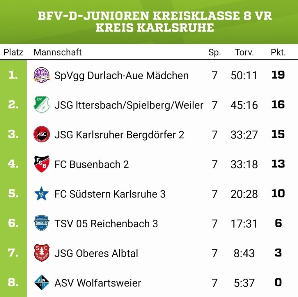 Somit stehen sowohl bei der B- als auch bei der D-Jugend die Abschlusstabellen der Vorrunde fest, die neue Einteilung erfolgt in den nächsten Tagen. Bei der A- und C-Jugend läuft dies wie bei der B-Jugend ab, hier konnten wir jedoch wegen Spielermangel keine Mannschaft melden.