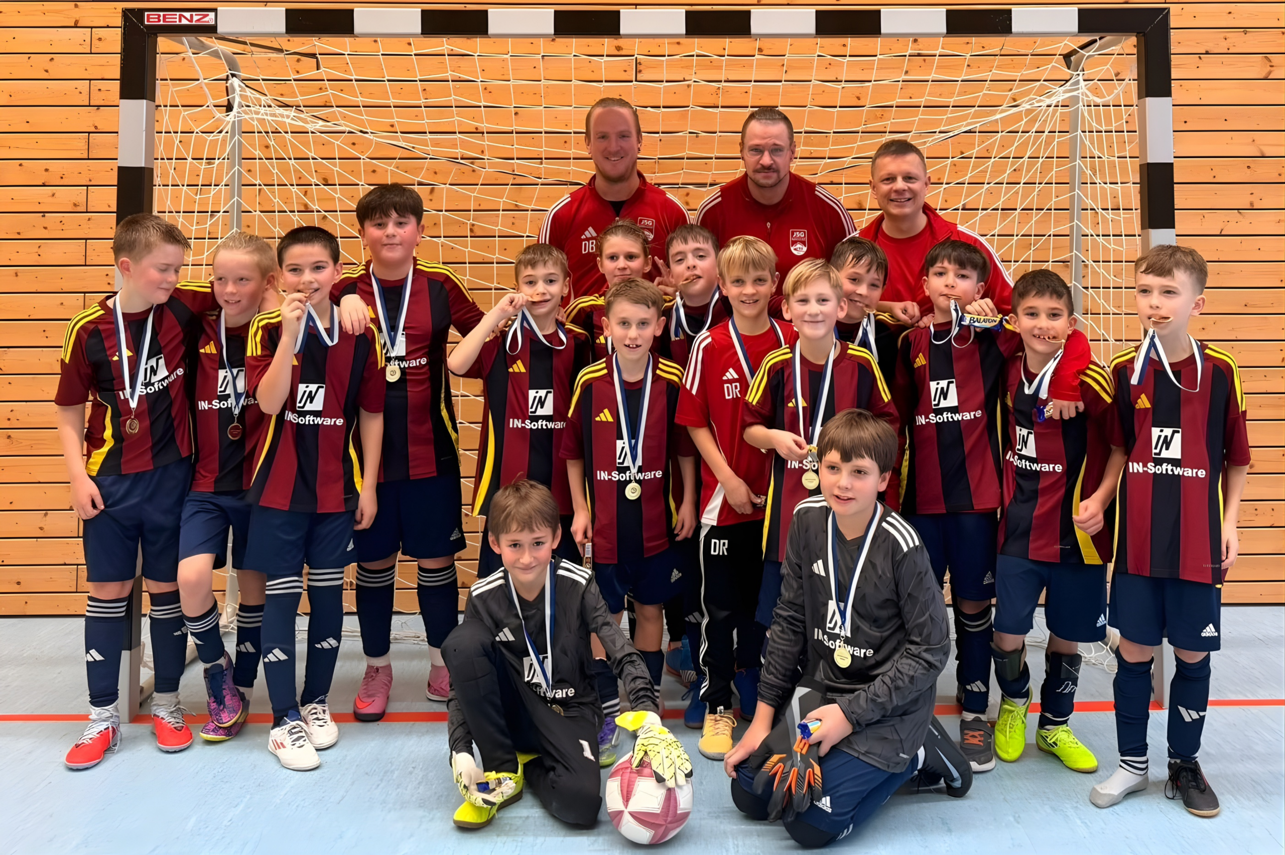 In der Parallelgruppe gewann die E1 zum Auftakt deutlich 7:0 gegen Bruchhausen und 6:0 gegen Malsch. Gegen die späteren Turniersieger des SSV Ettlingen musste man sich sehr unglücklich nach drei Eigentoren (!) mit 2:3 geschlagen geben. Als Gruppenzweiter ging es im Halbfinale gegen SSV Ettlingen 2, wobei hier die Konzentration und das Spielglück etwas fehlte, sodass man nach dem 0:2 das Spiel um Platz drei erreichte, das mit 4:1 gegen SV Spielberg verdient gewonnen wurde. Ein toller dritter Platz!