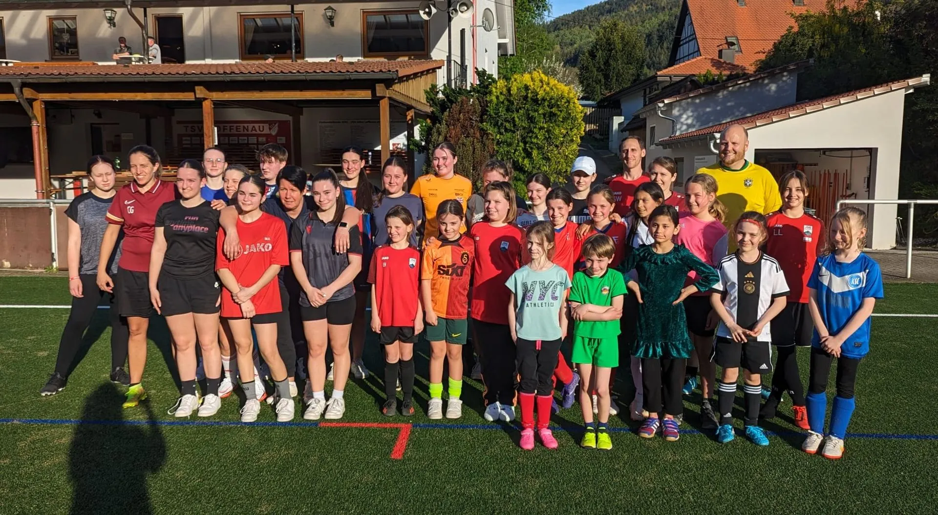 Dass nicht nur bei uns zunehmend Mädchen Interesse am Fußball bekommen und auch Trainingsmöglichkeiten suchen, sondern auch im näheren Umkreis, bekamen wir zufällig bei Vorbereitungsspielen unserer E-Jugend in Loffenau mit. Nach kurzem und positivem Austausch zwischen Anna-Lena vom TSV Loffenau und Sebastian, wurde ein gemeinsames Training geplant. Bei diesem sollte der Sportplatz von einer großen weiblichen Trainingsgruppe gefüllt werden. Claudia, Melli und Sebastian fuhren mit 9 C-Juniorinnen und 4 F-Juniorinnen nach Loffenau, wo wir von 14 Spielerinne des TSV und deren Trainern empfangen wurden. Die Gastgeber hatten bereits drei Übungen aufgebaut und wir teilten die Mädchen nach kurzer Vorstellungsrunde nach Alter in drei Trainingsgruppen ein. Für eine gute Stunde herrschte mit 27 Spielerinnen reger Trainingsbetrieb und nach kurzer „Kennenlernphase“ begannenbereitsin kurzen Trainingspausen die ersten Gespräche untereinander zur jeweiligen aktuellen Trainingssituation. Auch bei einer kurzen Feedback-Runde am Ende kamen ausschließlich positive Rückmeldungen zur großen Trainingsgruppe. Ein Gegenbesuch, also ein gemeinsames Training in Herrenalb, ist bereits ins Auge gefasst. Hierbei kann die Trainingsgruppe durchaus größer werden, da leider ein paar Spielerinnen „beider Seiten des Käppele“ am Freitag nicht teilnehmen konnten.