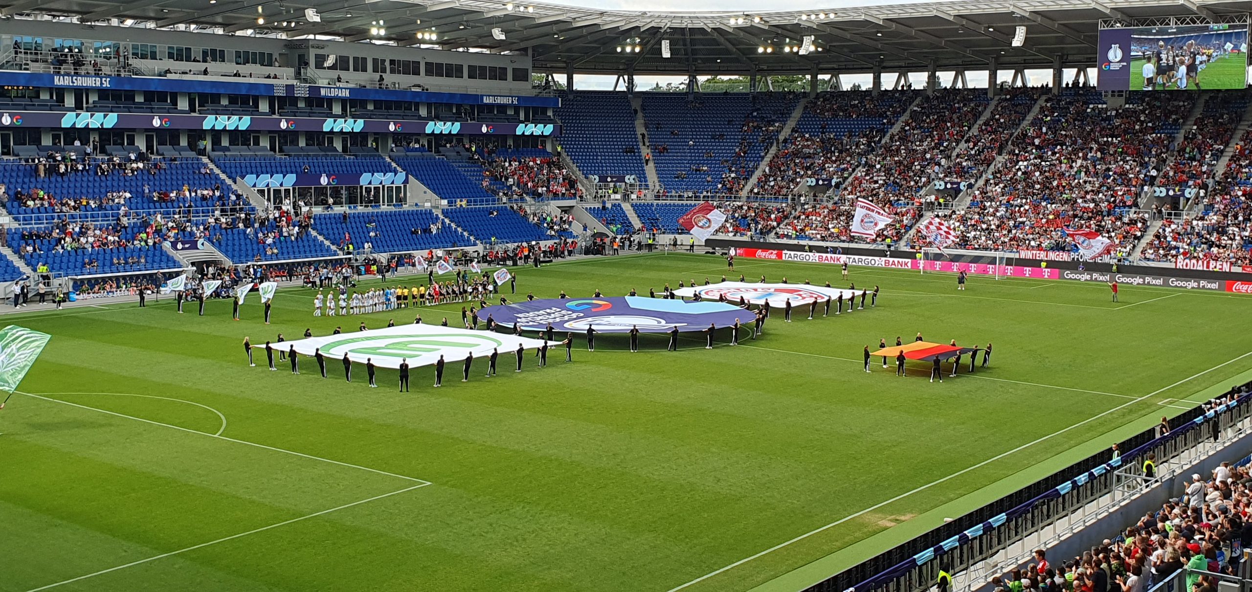 Nachdem morgens bereits der AOK-Treff anstand, ging es für 10 Juniorinnen direkt im Anschluss weiter nach Karlsruhe. Im Wildpark fand der Supercup der Frauen statt, welchen die Frauen des FC Bayern (Meister und Pokalsieger) gegen die des VfL Wolfsburg (Vize-Meister) ausspielten. Durch viele Abgänge bei den Wölfinnen war die Favoritenrolle im Vorfeld bei den Bayern. Auch bei den Fans waren die Bayern im Übergewicht, was man bei der allgemein guten Stimmung während der Eröffnungsfeier jedoch nicht spürte, da hier gemeinsam einem guten Spiel entgegengefiebert wurde. So sagen auch Anhänger beider Teams und neutrale Zuschauer nach dem Einlaufen lautstark bei der Nationalhymne mit, ehe die Partie angepfiffen wurde.