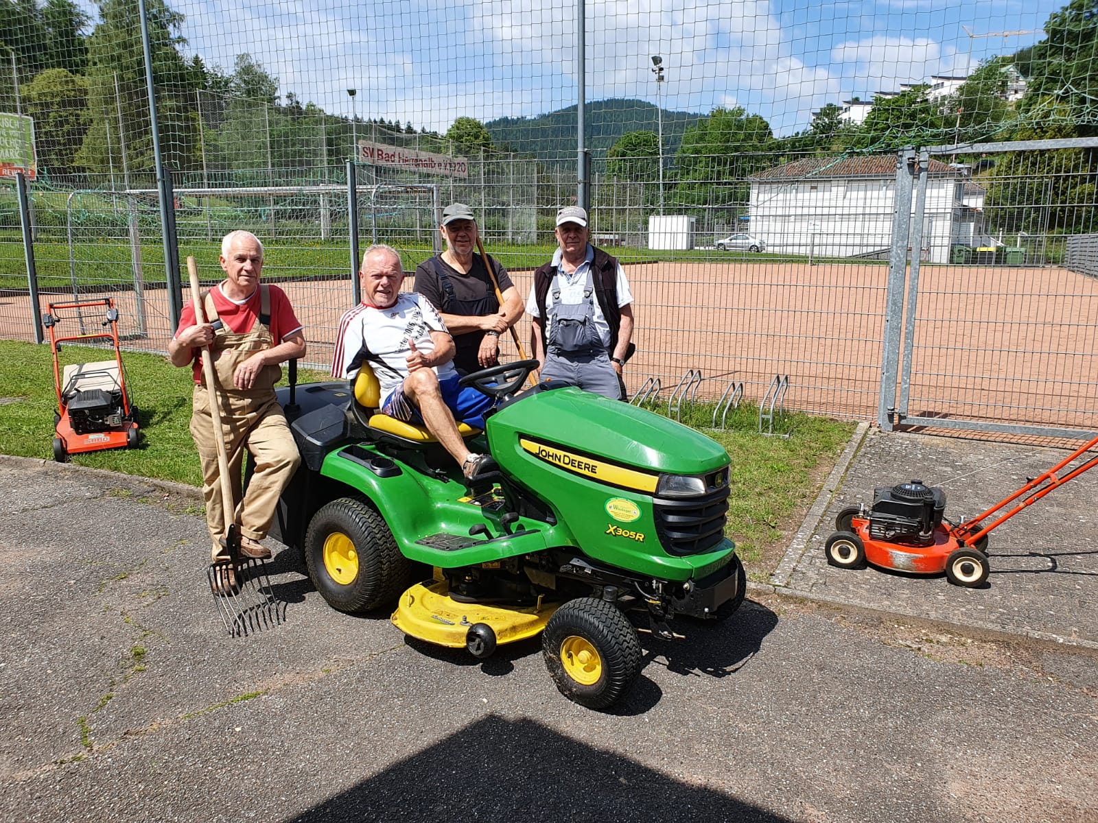 Auf dem Sportplatz des SV Bad Herrenalb hat sich einiges getan. Unser Freitagstrupp hat seine Arbeit aufgenommen und ist wieder mit Feuereifer dabei, den Platz sowie die Außenanlagen zu hegen und zu pflegen. Ein großer Dank an dieser Stelle an unsere Oldies, die den Platz fit für die kommende Saison gemacht haben und sich auch im Sportheim um größere und kleinere Reparaturen kümmern.