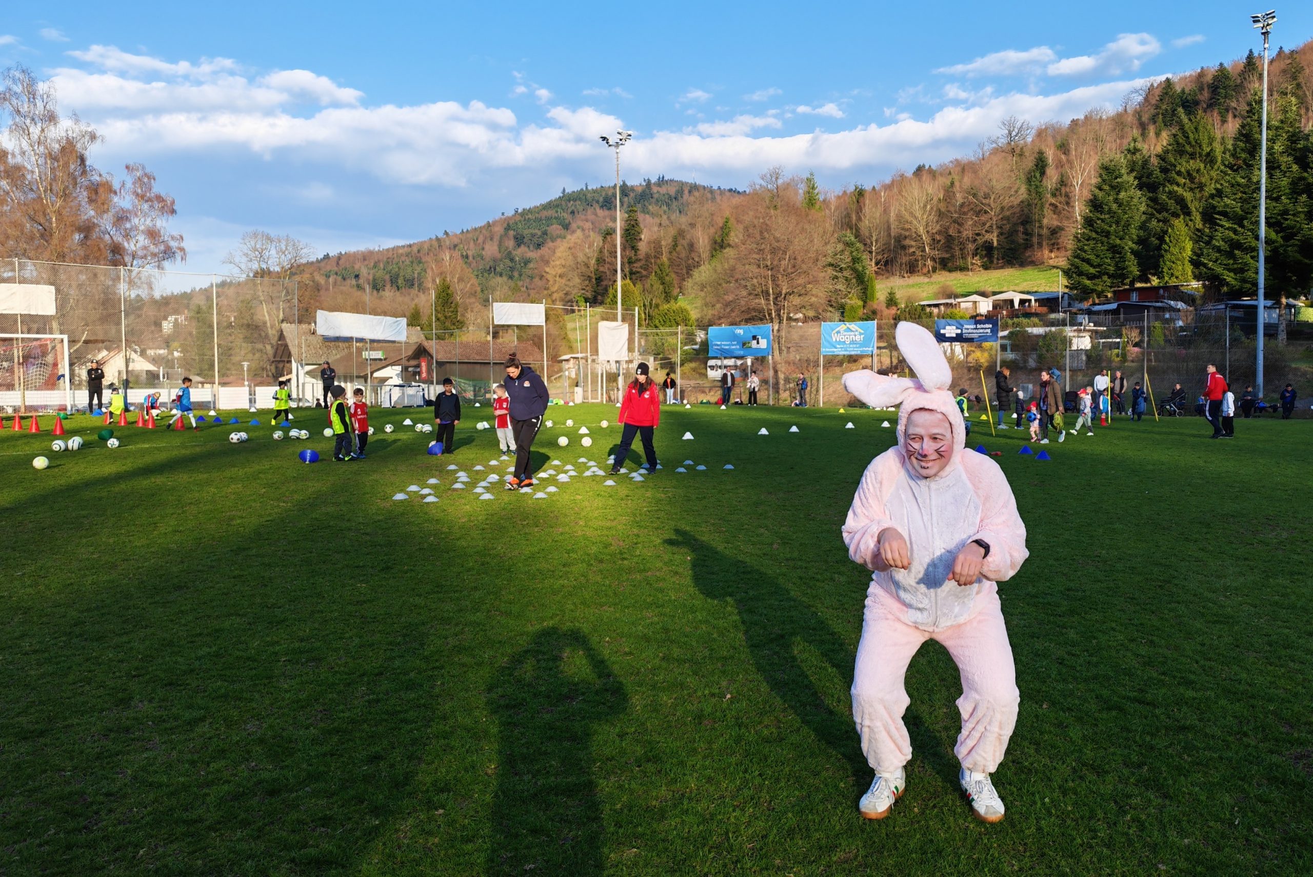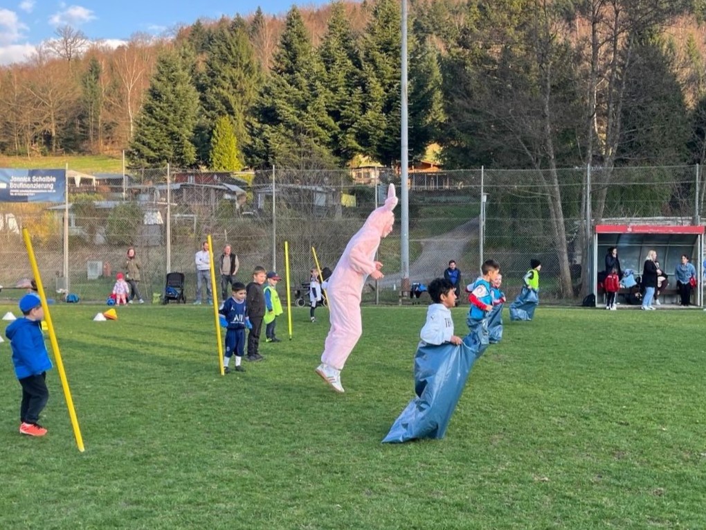 Am Montag vor den Osterferien besuchte der Osterhase das Bambini-Training in Herrenalb. Das Trainerteam hatte sechs Stationen aufgebaut, bei denen sich die Jüngsten als Osterhasen-Lehrlinge beweisen konnten. Beim Eierlaufen und der Eiersuche stand das Osterei im Mittelpunkt, beim Sackhüpfen übten sich die Bambini in der Fortbewegungsart des Osterhasen – unnötig zu berichten, dass der Stargast allen davon hoppelte.