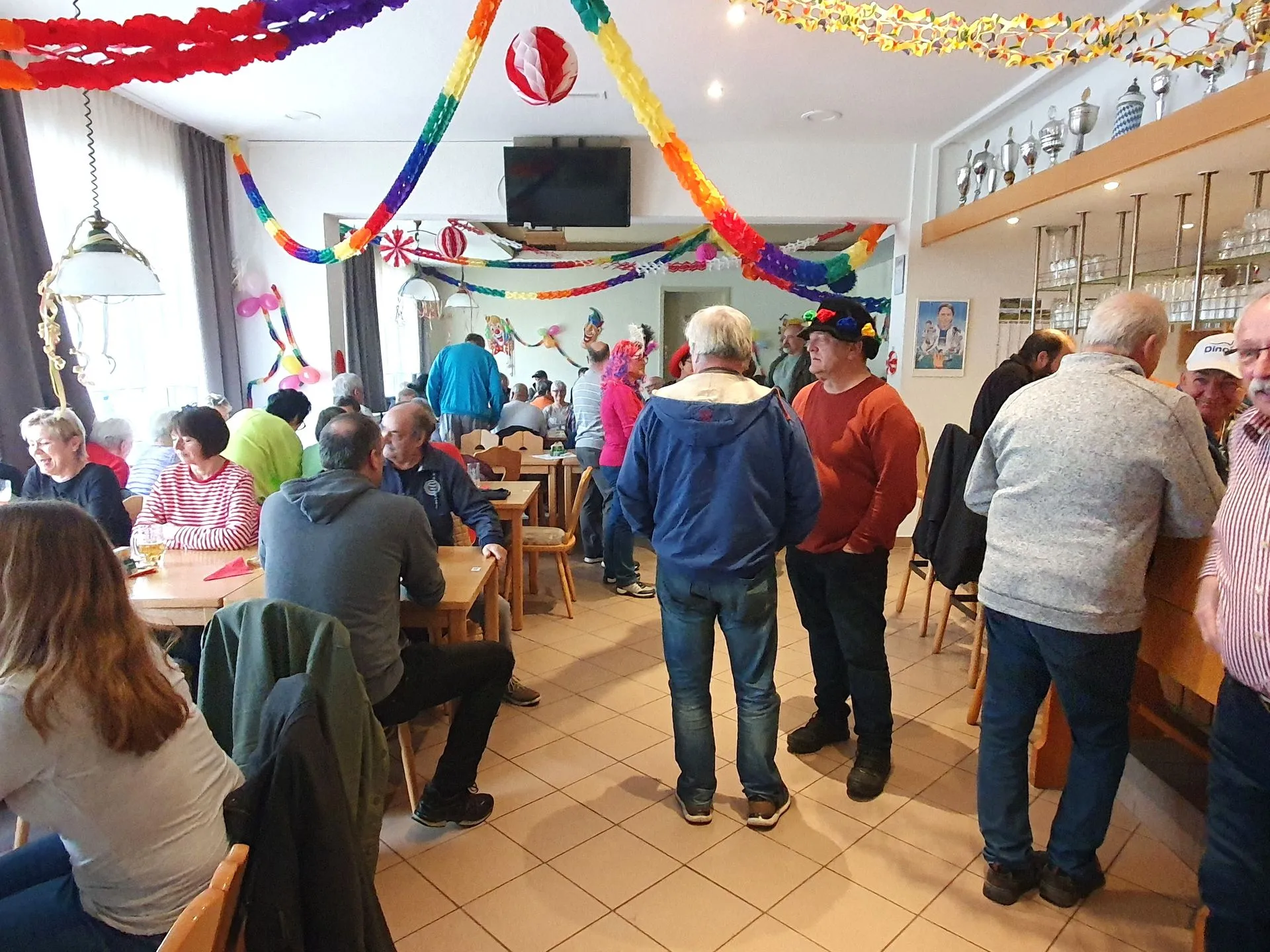 Am Faschingsdienstag (04.03.2025) stand das traditionelle „Saueressen“ im närrisch geschmückten und gut ausgelasteten Sportheim an. Neben Rinderleber, sauren Kutteln und pikanten Nierlen gab es Matjes sowie Fasnachtsküchle für die Liebhaber von Süßspeisen. Auch die neu eingerichtete Abholstation an der Gastrogarage fand großen Anklang und entlastete die Sitzplatzsituation im Sportheim deutlich. Gegen Nachmittag sorgten mit Vorstand Frank und Jürgen zwei Herzblutmusiker für Unterhaltung mit Stimmungsmusik auf dem Akkordeon.