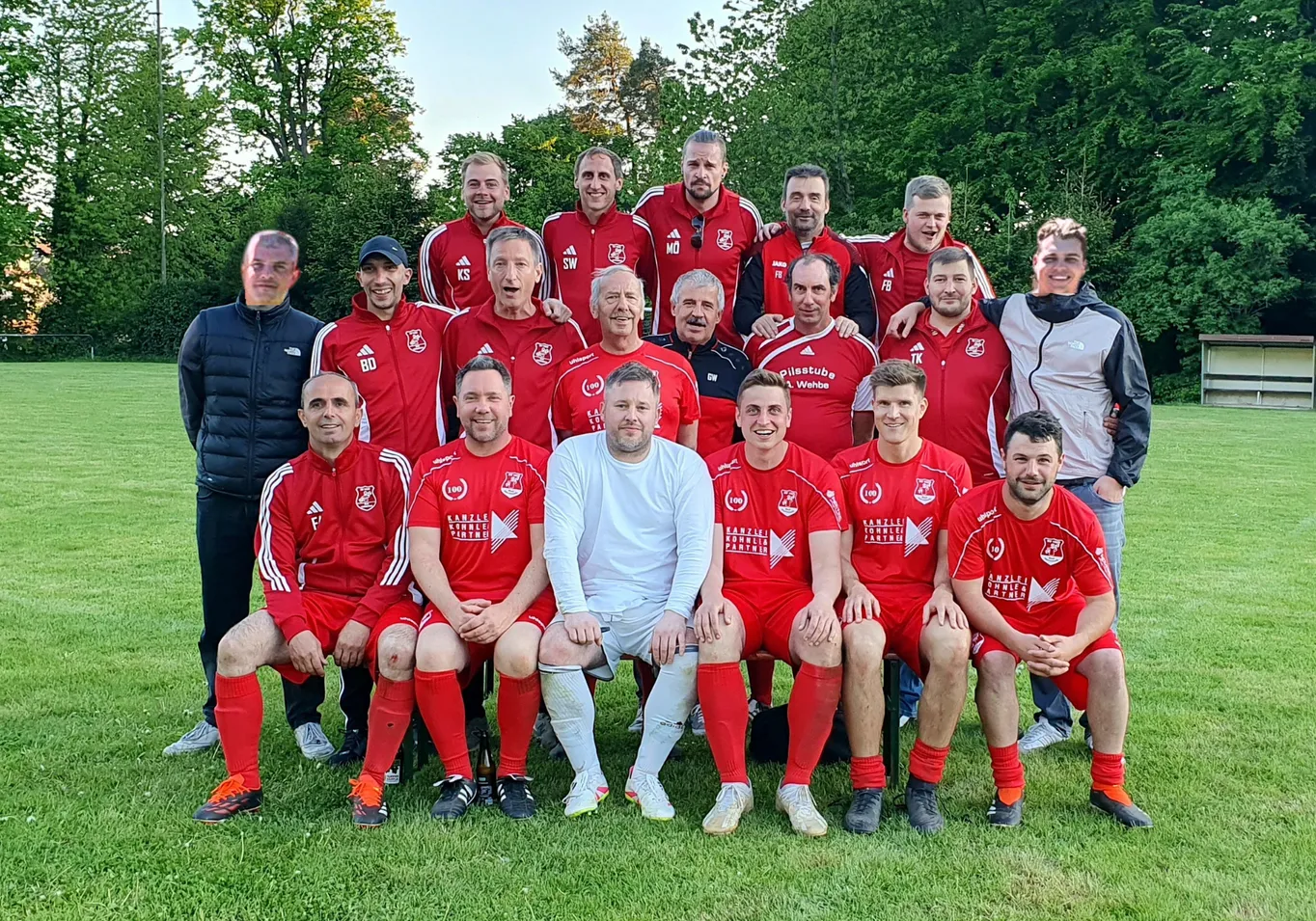 Nachdem sich unsere AH am 13.05.2023 beim Sportfest in Rotensol den zweiten Platz unter zehn Teilnehmern sicherte, war die Euphorie groß. Jedoch schien man sich auf den Lorbeeren ausruhen zu wollen, denn in der Folge war die Trainingsbeteiligung leider äußerst dürftig. Doch dann, wie aus dem Nichts, stand plötzlich das eigene Sportfest vor der Tür - konnte ja keiner wissen - und zu allem Überfluss fragte der SC Schielberg noch an, ob man zu einem AH-Blitzturnier eine Woche vor unserem Sportfest vorbeikommen würde. Doch bei unserer AH gilt "Wenn`s gilt sind alle da" und so konnte im Vorfeld des Schielberger Sportfestes nochmal ein Training in größerer Runde durchgeführt werden. Dies und die frisch aus der Aktivität zur AH gestoßenen Spieler machte sich auch beim Turnier gleich bemerkbar. Beim Blitzturnier (Hin- und Rückrunde) gegen die AH des SC Schielberg und der Sportfreunde Dobel konnte man die Gastgeber zweimal mit 1:0 besiegen und die Sportfreunde mit zwei 1:1 erfolgreich auf Distanz halten. Somit stand man am Ende als ungeschlagener Turniersieger fest. Sicher war das legale und altersgerechte Doping vom Kuchenstand der Jugend (ein Eimer Eiskaffee) auch einer der Wegbereiter um die Spiele hell wach und bei kühlem Kopf anzugehen. Im Nachgang saß man noch gemütlich beisammen und lies das Turnier und auch sonstige Fußballthemen Revue passieren. Wir bedanken uns bei den Gastgebern für ein tolles Turnier. Wir kommen gerne wieder.