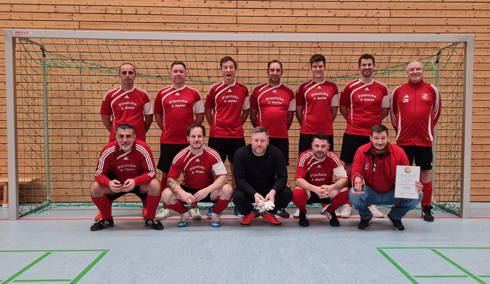 Aber was soll’s, das AH-Turnier war ein Spaß-Turnier und der zweite Platz war eine geile Leistung, die man zuvor bei starkem Teilnehmerfeld nicht erwarten konnte. Die Fans und mitgereisten Trainingskameraden waren enorm stolz auf unser AH-Team. Hinterher war man sich einig: Wäre der Fleischkäseweck nicht schon in der Gruppenphase ausgegangen, wäre man nach dem Halbfinale frisch gestärkt als Sieger vom Feld gegangen.