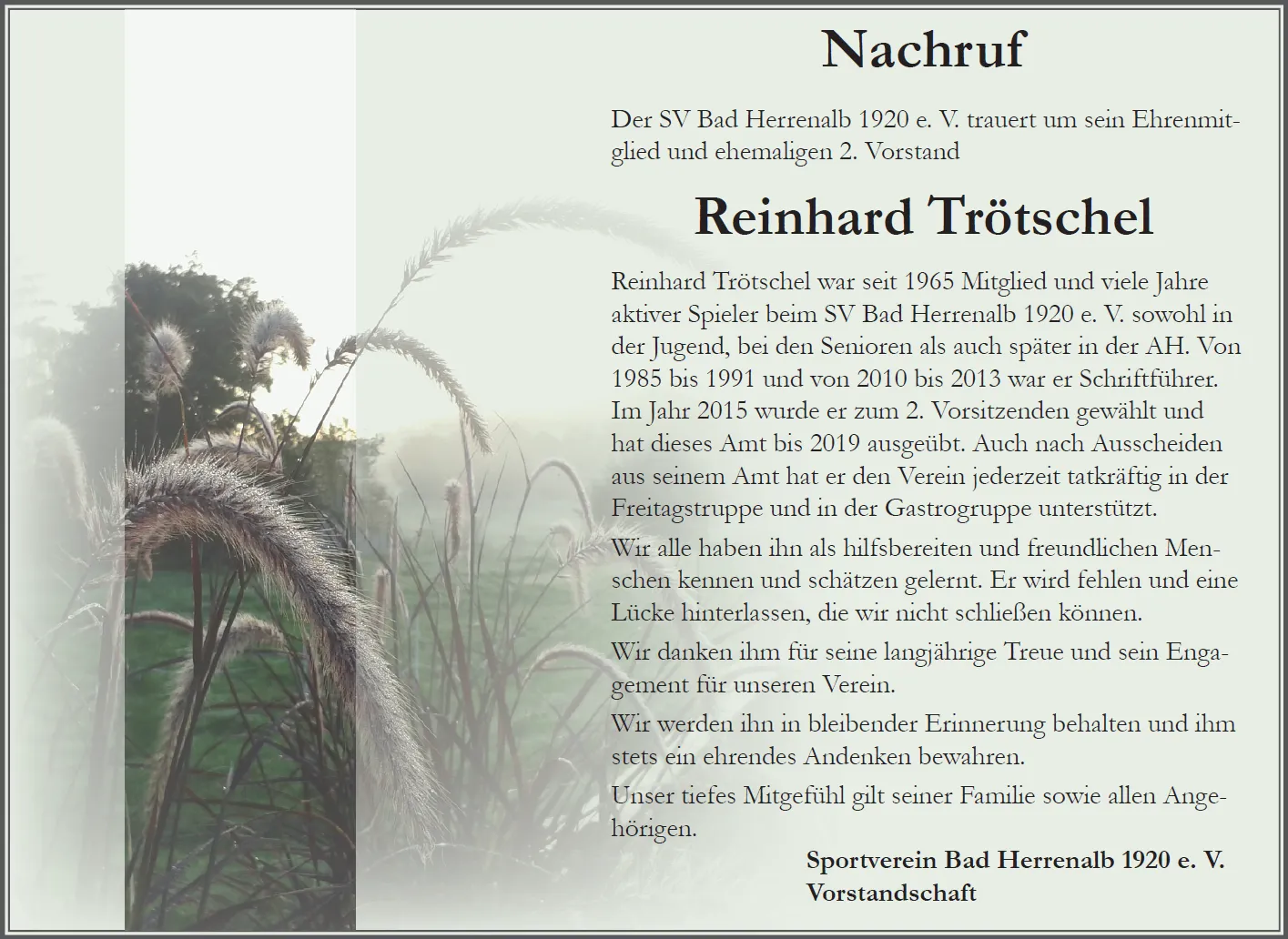 Mit Reinhard verlässt uns ein treues und sehr engagiertes Mitglied für immer.