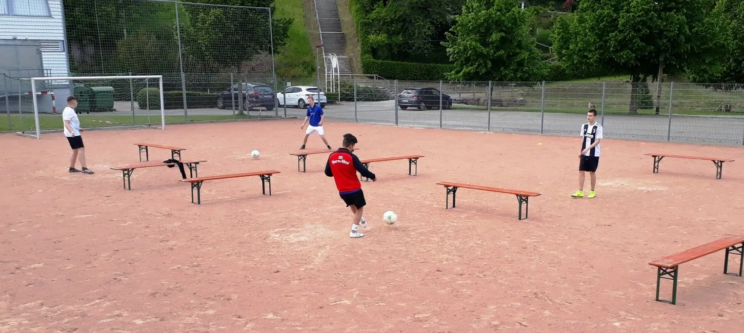 Zu Beginn belächelt, fielen den Jungs die Übungen mit zunehmender Komplexität schwerer und die Konzentration war gefragt. Nach gut 45 Minuten wechselten wir zu unserem altbekannten Trainingsgerät, dem Fußball. Doch auch hier standen zunächst Einzelübungen auf dem Programm, welche den Jungs auch als Übungen für das Heimtraining in der kontaktbegrenzten Zeit nahegelegt wurden. Zum Schluss standen noch ein paar Passübungen auf dem Programm, eher wir im Eins gegen Eins mit „Fußballtennis“ den Kreis zu unseren ersten Trainingsbällen schlossen und so sogar noch eine kleine Spielform durchführen konnten.