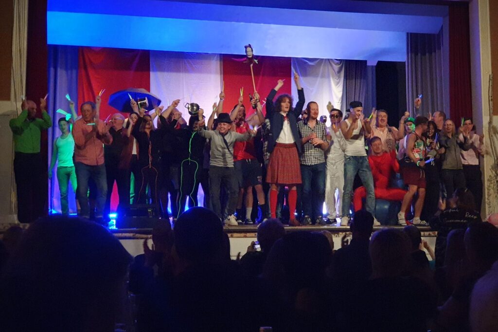 Abschluss der Hitparade war ein gemeinsamer Auftritt aller Akteure des Abends. Der Applaus der Zuschauer entschädigte für die vielen Stunden des Probens und der Vorbereitung.Zum Ende des Abends erfolgte die Verlosung der Hauptpreise der Tombola auf der Bühne, ehe die restlichen Gewinnerlose im Vorraum des Kurhauses gegen einen der über 400 Preise eingetauscht werden konnte, bevor man anschließend noch gemütliche Stunden im Lukas-Stüberl oder bei Abbas verbringen konnte. Es war auf jeden Fall wieder ein kurzweiliger und sehr abwechslungsreicher Abend und wir bedanken uns an dieser Stelle nochmals bei allen beteiligten Akteuren vor und hinter der Bühne, sowie in der Vorbereitung und beim Aufräumen.