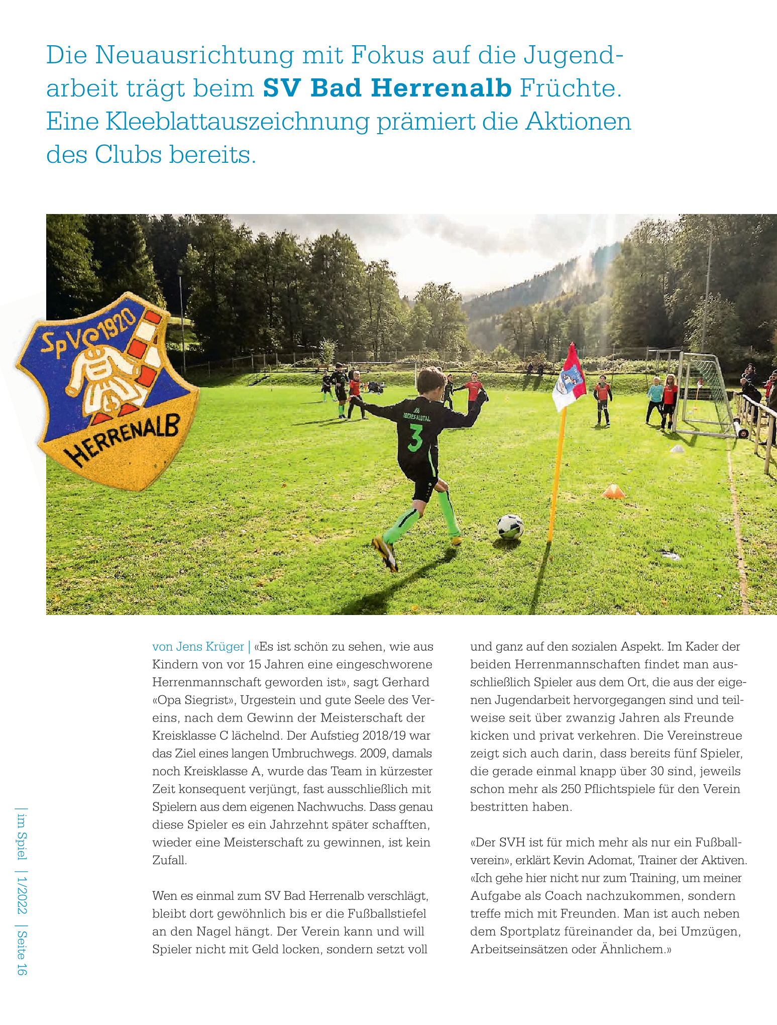 Für diesen tollen Artikel geht ein großer Dank an Herrn Arabia, Redakteur „Im Spiel“, für seine tolle Unterstützung und das Arrangement des Berichts. Dieser Artikel präsentiert den SV Bad Herrenalb in allen Fußballkreisen Badens und Württembergs hervorragend und sehr positiv.